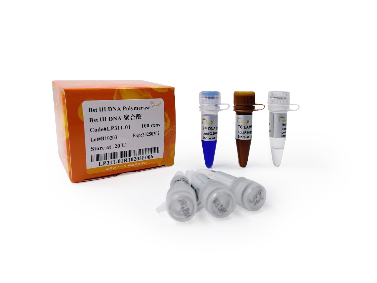 本產(chǎn)品包含Bst III DNA聚合酶、5×LAMP Reaction Mix、熒光染料TS LAMP Green,只需自備模板、引物。其中Bst III為Bst II DNA聚合酶的升級(jí)版,可以進(jìn)行以DNA或RNA為模板的LAMP反應(yīng),用于RT-LAMP反應(yīng)時(shí)不建議再加入反轉(zhuǎn)錄酶。5×LAMP Reaction Mix為優(yōu)化的預(yù)混反應(yīng)液,已包含反應(yīng)所需的MgSO4、dNTPs等組分,無(wú)需另外加入。