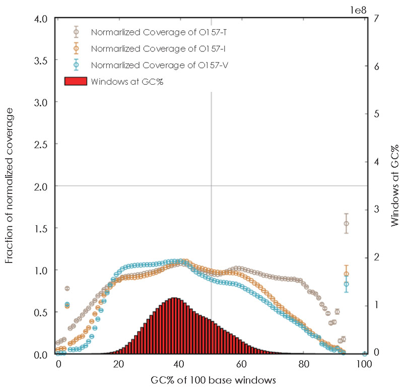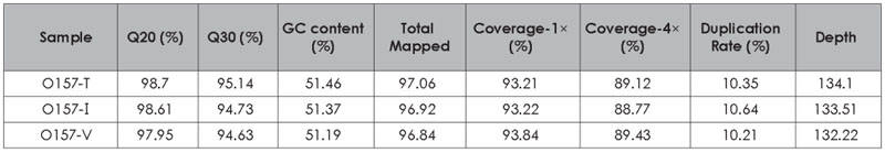 以1 ng 大腸桿菌O157 基因組DNA 為樣品,分別使用TransGen、Company I 和Company V 產(chǎn)品構(gòu)建全基因組短片段文庫,并進(jìn)行文庫測序及分析。