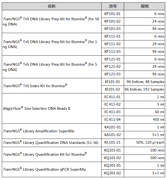 2. TransNGS? Tn5 DNA Library Prep Kit for Illumina? (for 1 ng DNA)