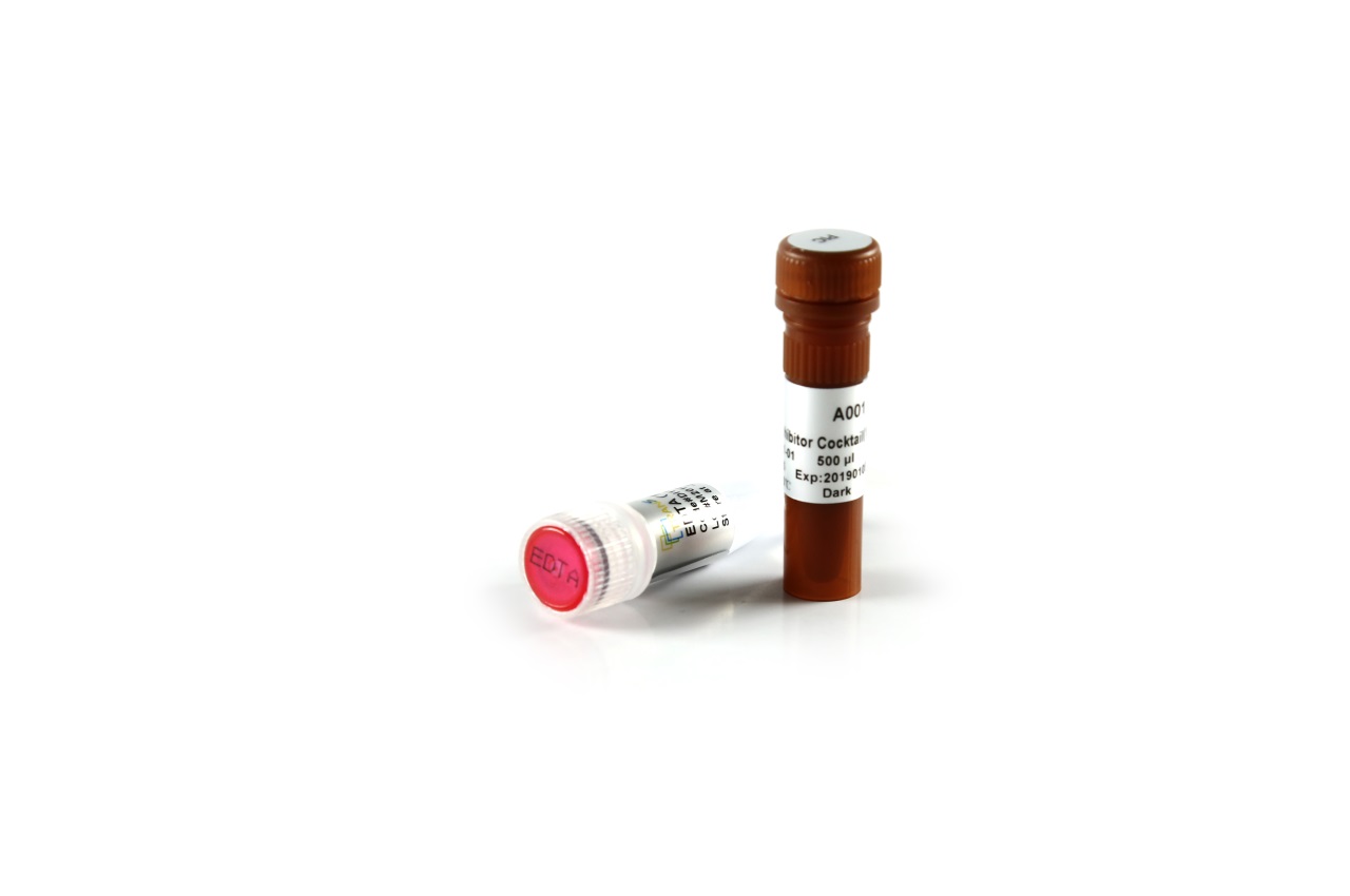 本產(chǎn)品是7種獨(dú)立的蛋白酶抑制劑(AEBSF,Aprotinin,Bestatin,E-64, Leupeptin,Pepstatin A,EDTA)的混合物,優(yōu)化的配比使得本產(chǎn)品可以抑制幾乎所有蛋白酶,包括絲氨酸蛋白酶、半胱氨酸蛋白酶、天冬氨酸蛋白酶、丙氨酰-氨基肽酶、胃蛋白酶、金屬蛋白酶等的活性,全方位防止蛋白降解。本產(chǎn)品適用于蛋白純化、Western Blot、Co-IP、ChIP、蛋白激酶活性測(cè)定等實(shí)驗(yàn)。