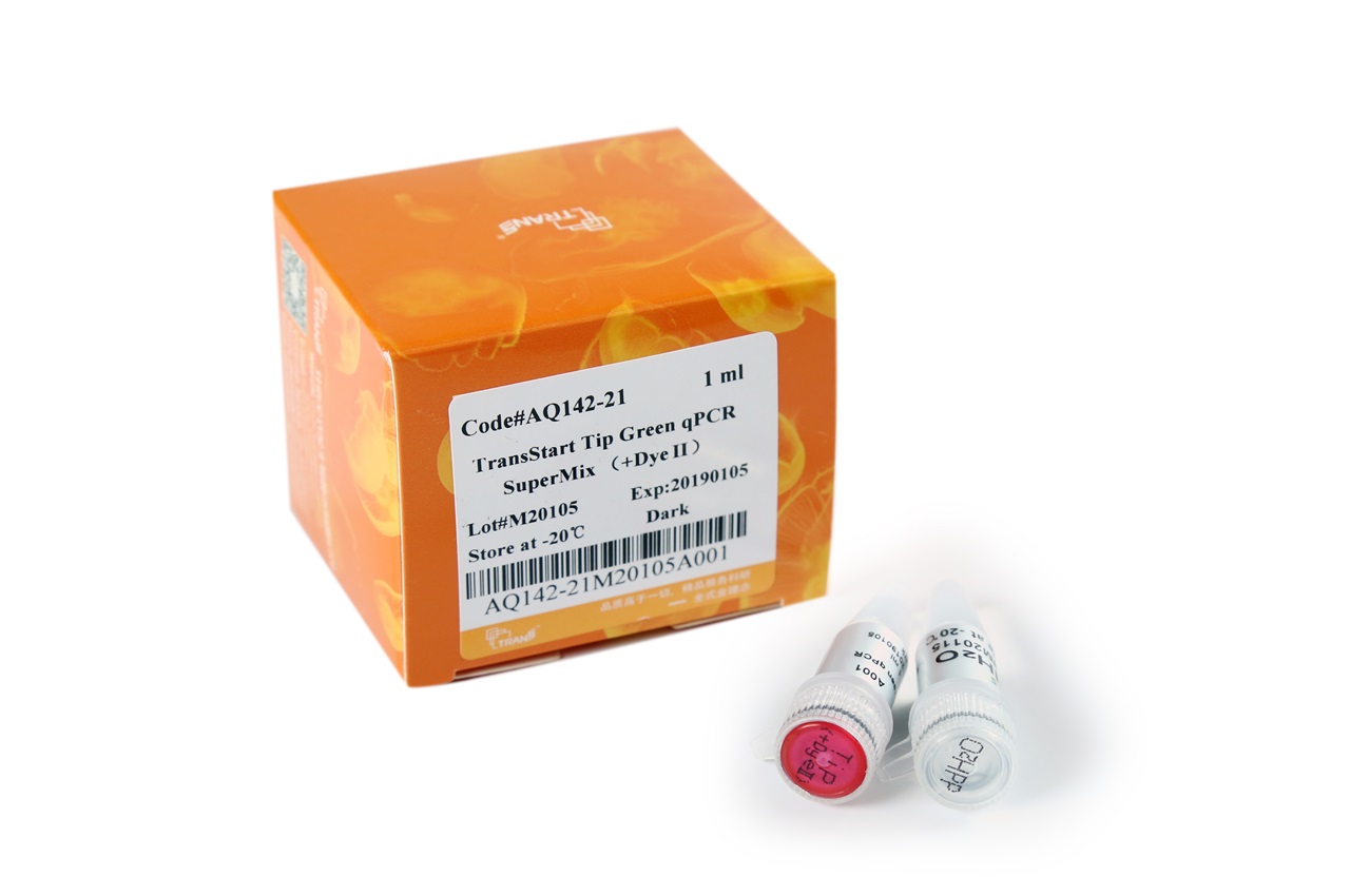 本產(chǎn)品包含全封閉法TransStart? TipTaq新型熱啟動(dòng)酶 ( 利用三種蛋白封閉模板和引物,利用特殊的化學(xué)物質(zhì)和DNA聚合酶結(jié)合,封閉DNA聚合酶活性 )、優(yōu)化的雙陽離子緩沖液、EvaGreen熒光染料、dNTPs、PCR增強(qiáng)劑、PCR穩(wěn)定劑和Passive Reference Dye I / II。本產(chǎn)品濃度為,使用時(shí)只需加入模板、引物和水,使其工作濃度為,即可進(jìn)行反應(yīng)。