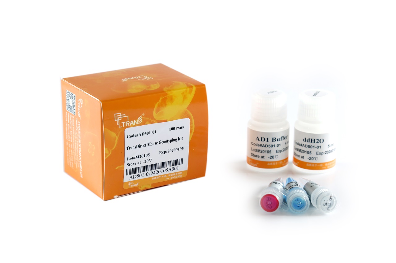 本試劑盒采用獨特的裂解液裂解小鼠基因分型常用的耳朵、腳趾、尾巴(新鮮或凍存組織)等組織,所得裂解物無需純化即可直接作為模板,用高效率、抗抑制的2×TransDirect? Mouse Genotyping SuperMix (+dye) 進行擴增,擴增產(chǎn)物可直接電泳點樣。